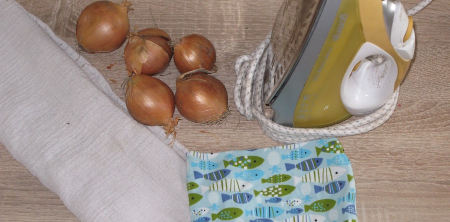 Priprava: Čebulo zrežemo na kolobarje in rahlo prepražimo na olju. Nato jo zavijemo v krpo, tako široko, da dobimo zavitek, ki bo pokril celotno uho in še nekaj površine pod njim. Ta zavitek dobro polikamo z obeh strani.