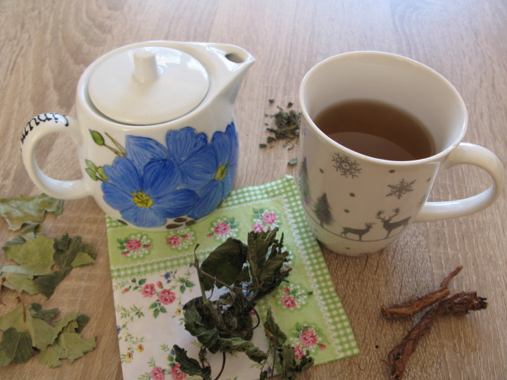 Priprava: Zavremo skodelico vode,nato jo odstavimo in vanjo stresemo ščep posušenih zelišč iz zgornje mešanice. Pustimo pokrito namakati 10 minut, nato precedimo in počasi popijemo.