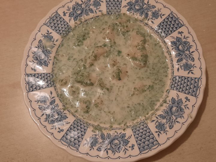 Juha z vodno krešo na osnovi sladke smetane.